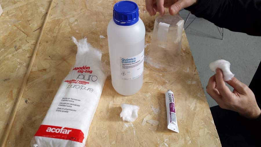 During a lab workshop on natural components the instructor presented a series of components and he introduced a composite made with potassium silicate and japanese paper. That pulled my attention so I decided to experiment with it even though I am conscious I will never get much transparency - natural component do not allow transparency and probably neither much rigidity. But I'll try it out.