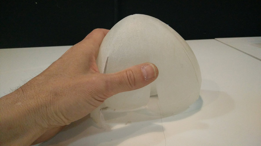 I decided to repeat the molding using licra - thin and high density mesh of fiber. Combine with epoxy resin I trust to gain also a better transluscence.