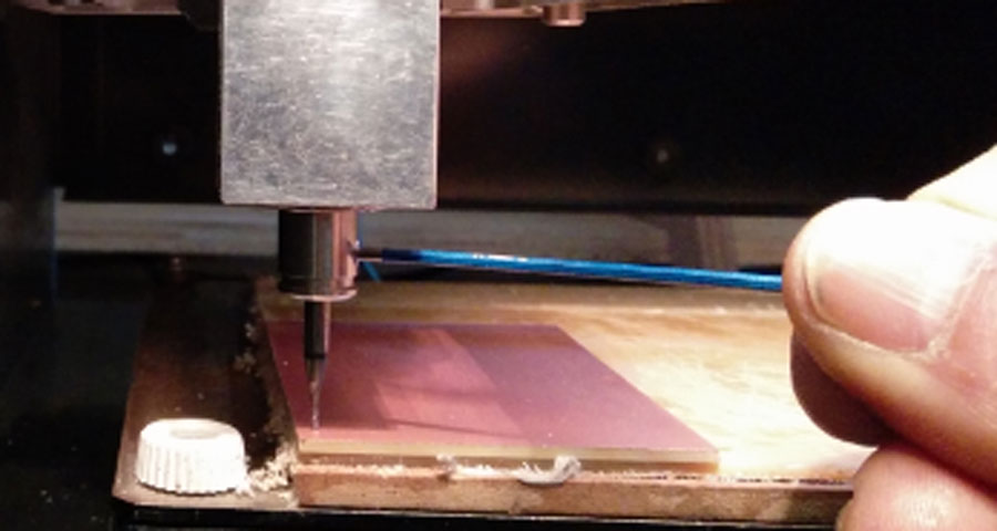 Milling is a very precise operation as we are talking about traces that are very tiny on the range of 1/64th of an inch giving little tolerance for mistakes. Preparation is an important part of the work. The first thing to do is to make shure the board is 100% flat. An easy way to do that is to lay the board at a 90ยบ angle against a metal ruler (or any 100% flat surface) and look at it sideways against a light source. If the light spills between the board and the ruler that means it is bent and will not lay flat on the bed, and consequently the 0 of the Z axis will not be accurate throughout the whole surface of the board and therefore it might not mill completely through the copper layer making the board uselss. If it is the case either get another board or straignten it until it is completely flat.