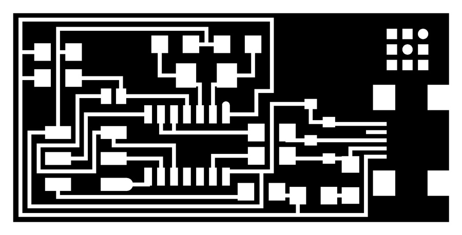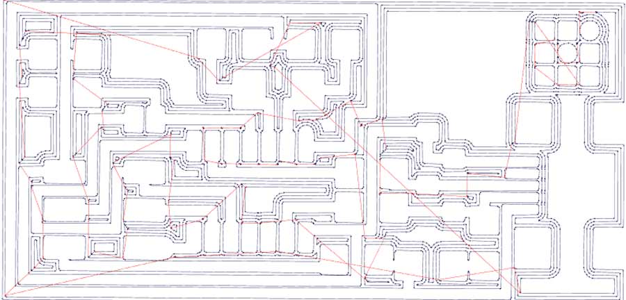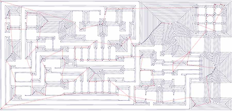 Note that not all the copper will be removed but only a section around the traces whichis fine. To leave on the copper on the trace the overlap preset needs to be set to: -1. And consequently it will slow the job as a lot more milling will have to be done. In this case the file would look like that: