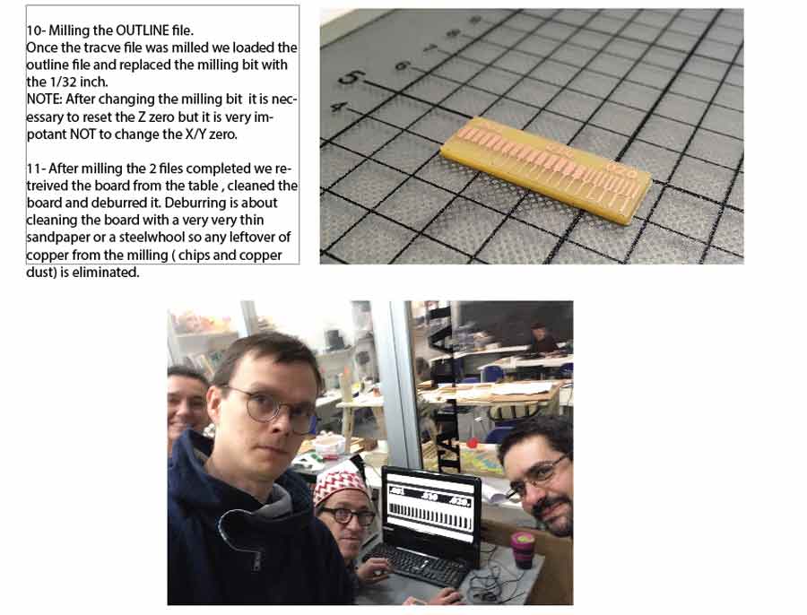 Once milling completed the board has to be deburred: