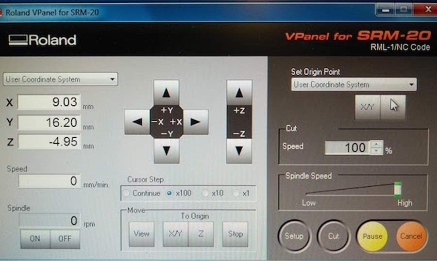 The Roland SRM 20 is user-friendly. It has its proper interface and the drivers were already installed on the lab computer that runs it.