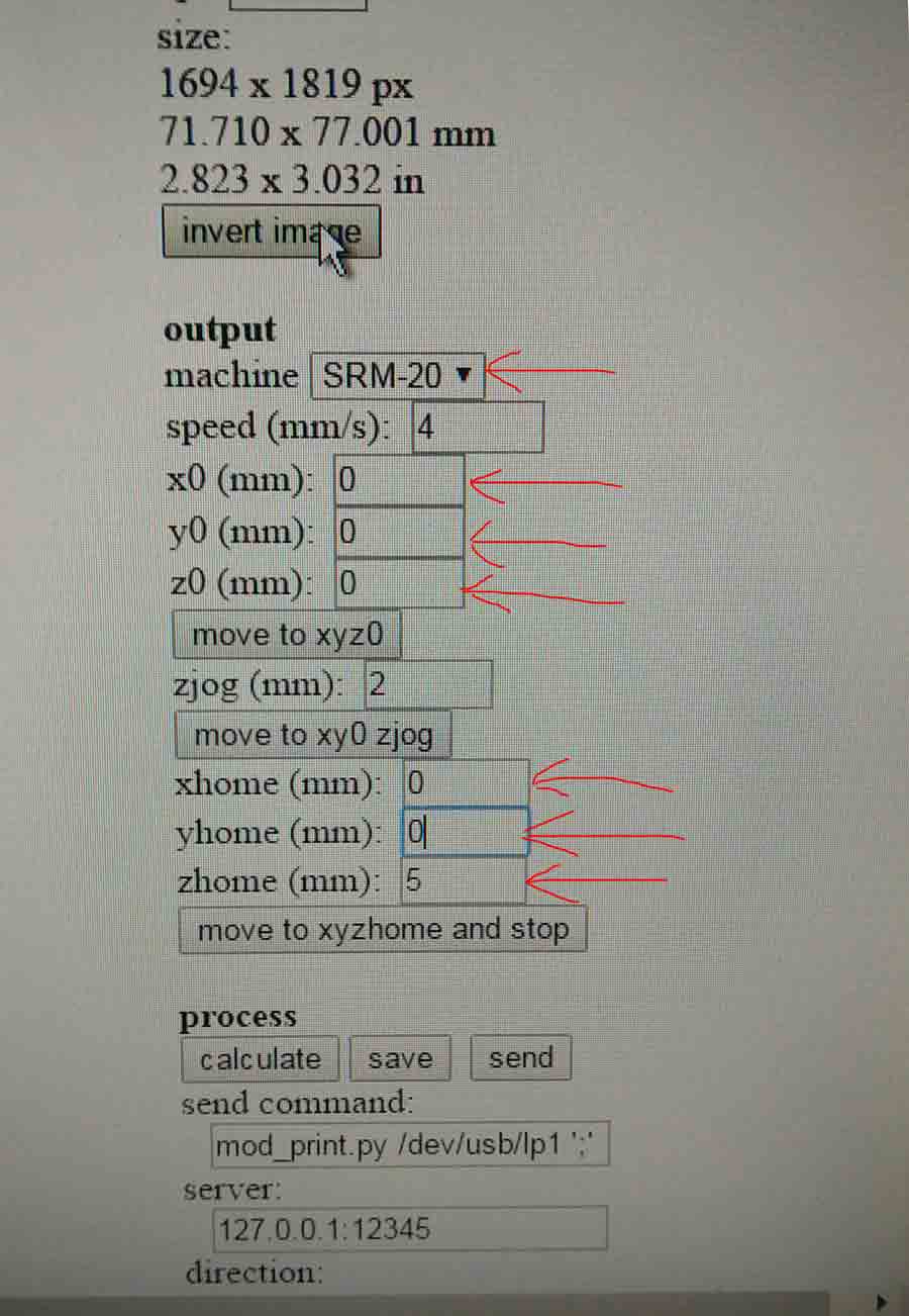 The last thing to do is to save the file (botton next to calculate botton). The file will be save in .rml format which is the format for the Roland desktop mill.