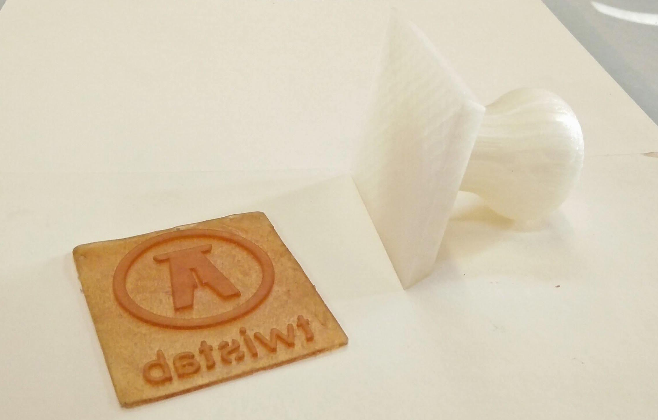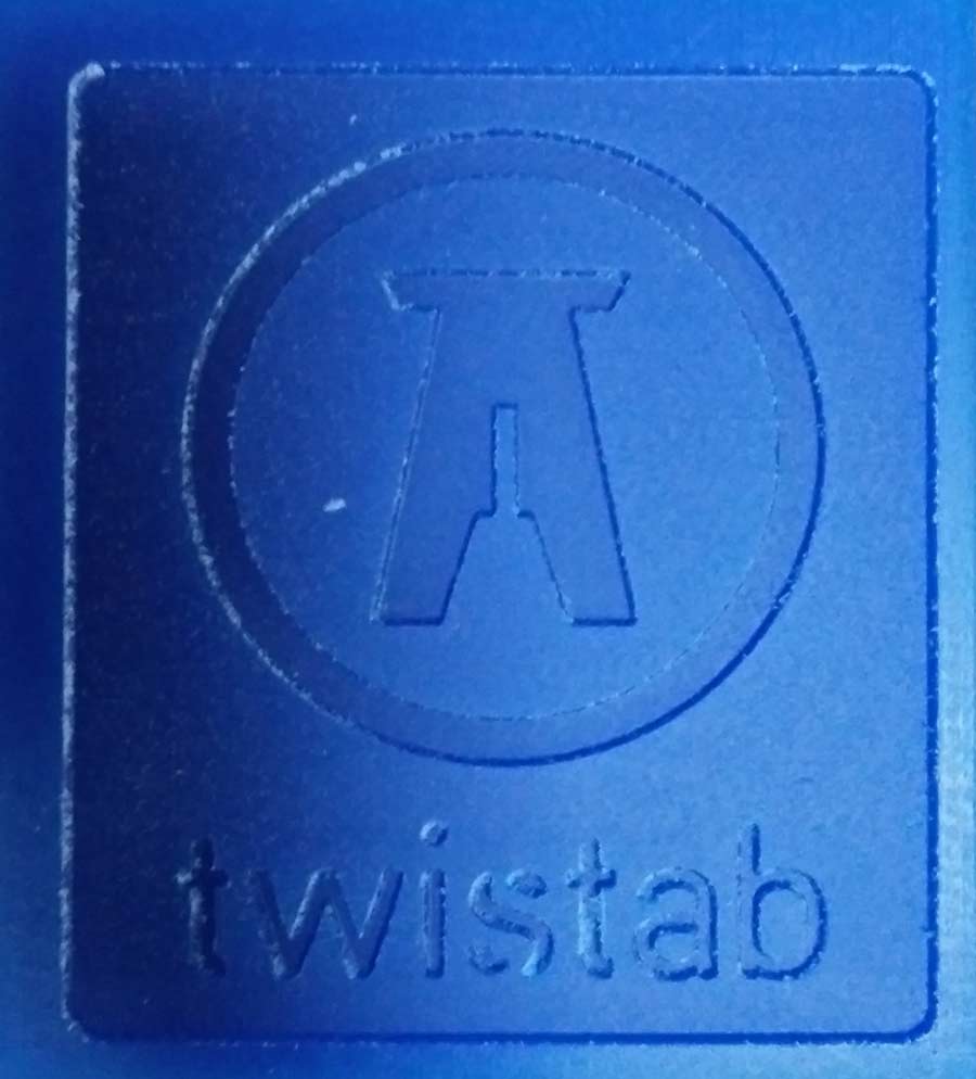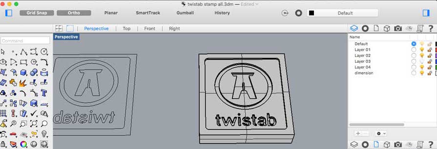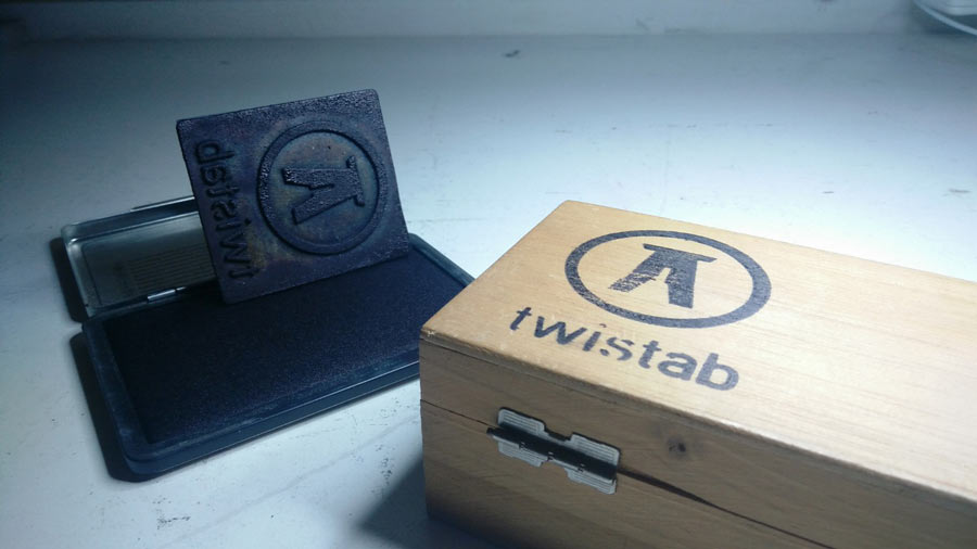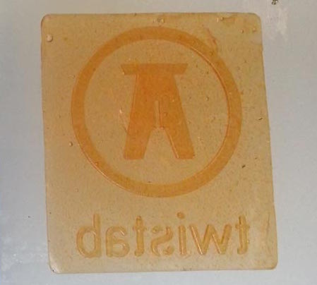 Making the Rhino file I struggled to figure out the positive/negative extrusion so the word "Twistab" would come out the right way when the ink is stamped on the surface.