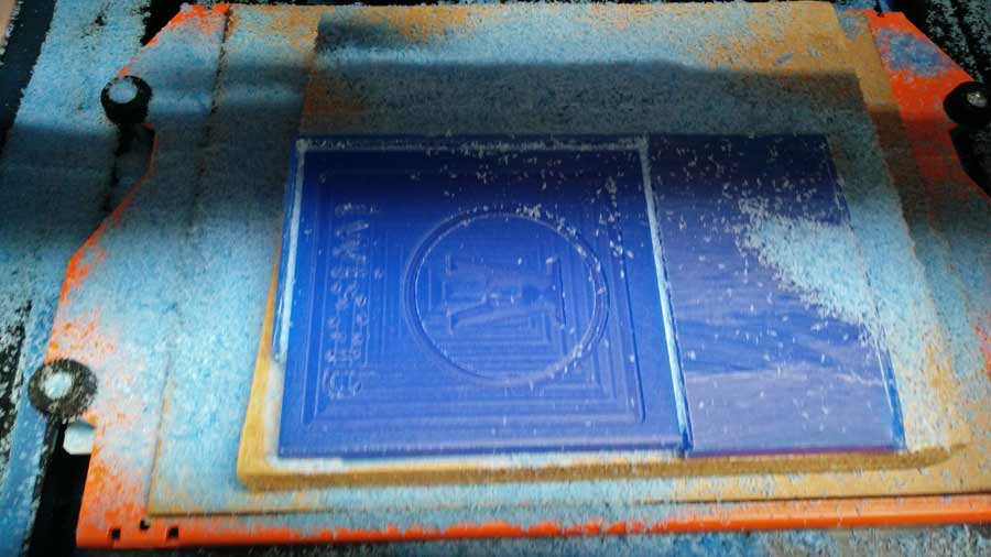 My first attempt was a mold with the letter reversed but I did not casted it because I realized after milling that the rubber skin cast would result in the word reversed once it is stamped.