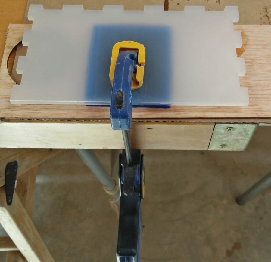 Than I poured it carefully into the mould, covered it with a piece of plexiglass and clamped it to a table.
