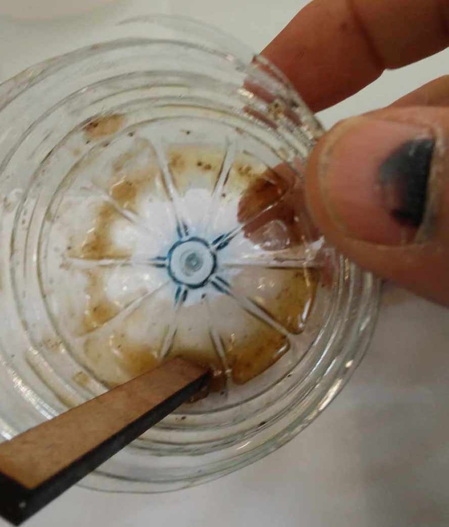 I have been curious about pine resin for a while and thaught it was a good opportunity to test it. I went by pure intuition and did not even read or research about it before. Just did it. I collected a bit (50 grams) of pine sap from a pine tree behind the lab, mixed it with 96% Alcohol (1:1 proportion). With a small stick I diluted the resin and the alcohol until getting a pasty liquid.