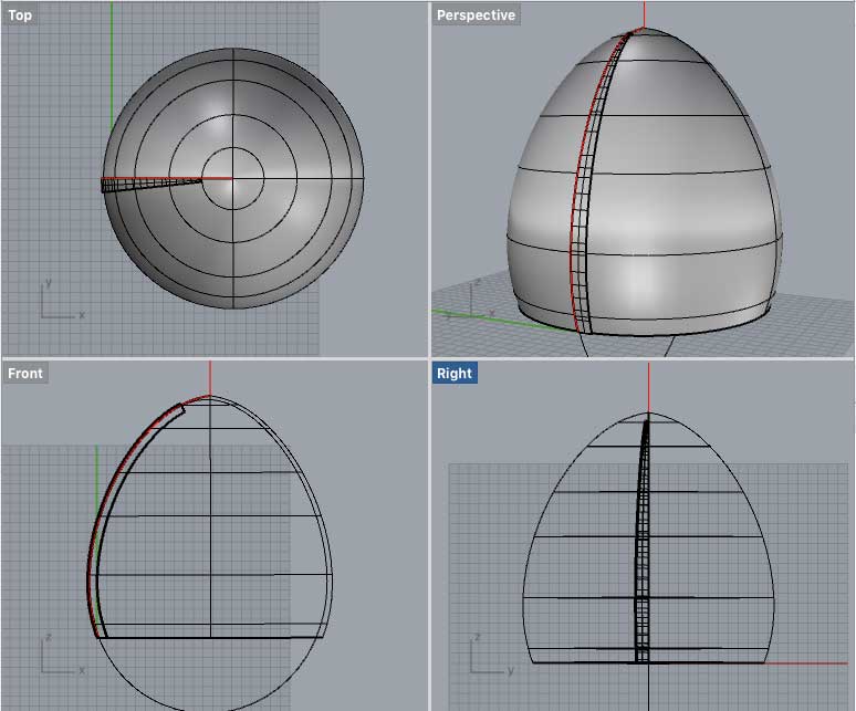 I designed the mould in Rhino using the generic shape of an egg as a base. (I would have prefer to use a parametric application but I don't feel comfortable enough yet to enjoy the designing process with grasshopper - I'll come back to this in my conclusion)