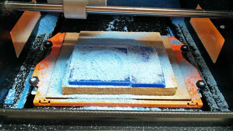 I sanded a little bit the slotting part of the mould so it would sit in all the way. Because of the ball endmill the cormer was not 90ª so I just rubbed off the top corner of the male surface.